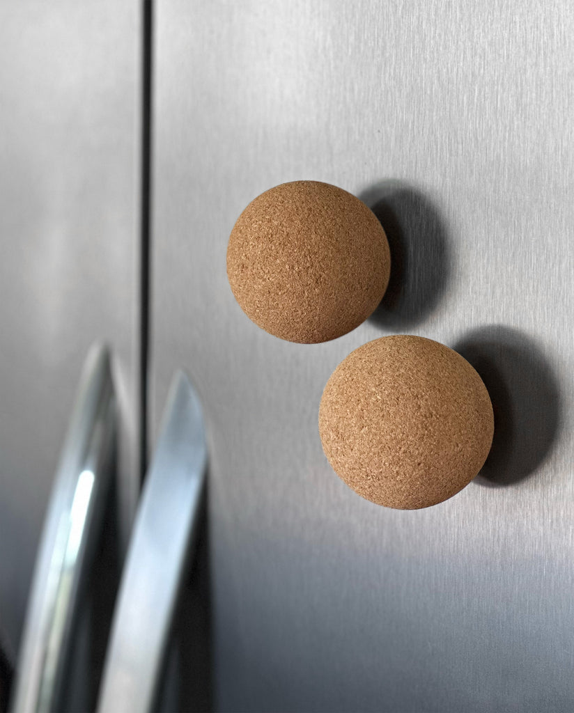 Our product is made from high-quality, eco-friendly materials such as cork and food-grade silicone. The embedded neodymium magnet allows for versatile use and easy storage.